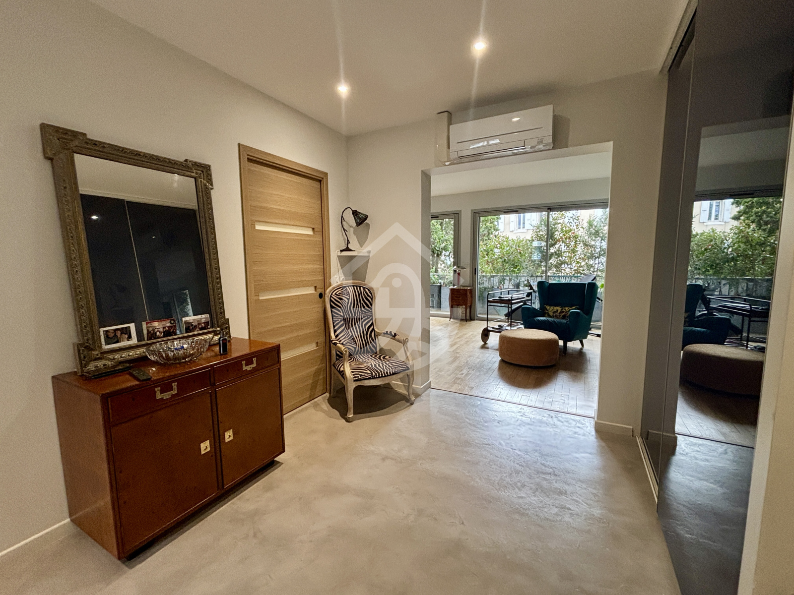 L'entrée se fait par un hall spacieux doté de placards donnant accès à une grande pièce de vie lumineuse de 42 m2.
